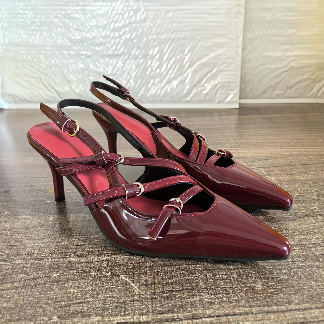 7cm Summer High Heels 7cm High Heels, Women's Sexy Black Pointed One-line Buckle Skinny Heel Shoes