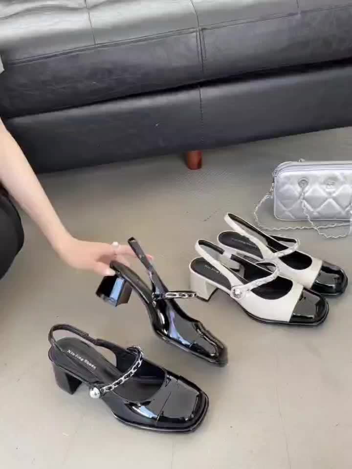 Chic Mary Jane Heels Chic Women's French Square Toe Mary Jane Heels | Glossy Black & White PU Cover, Chunky Block Heel, Adjustable Ankle Strap, Comfortable TPU Sole for All-Season Wear