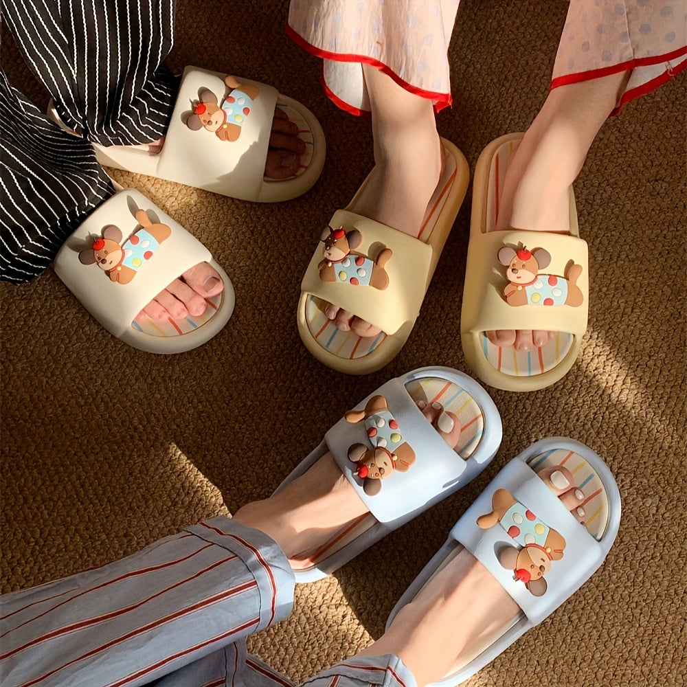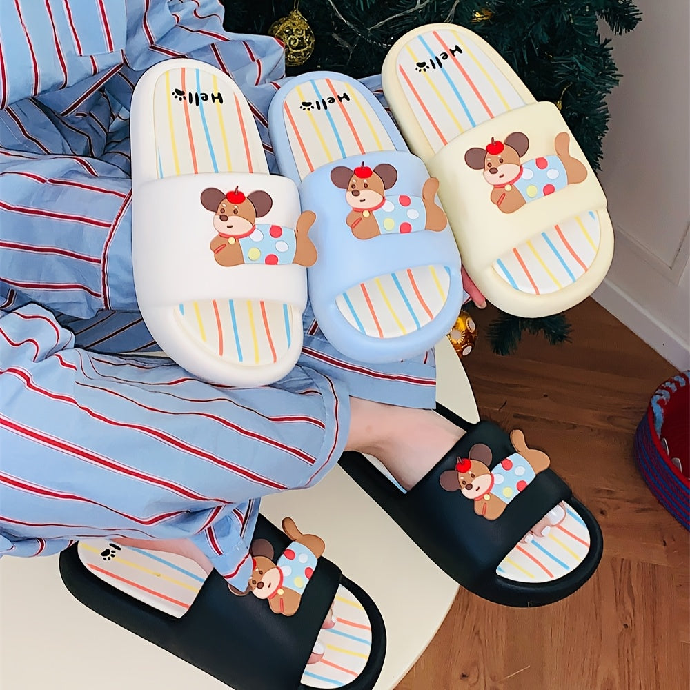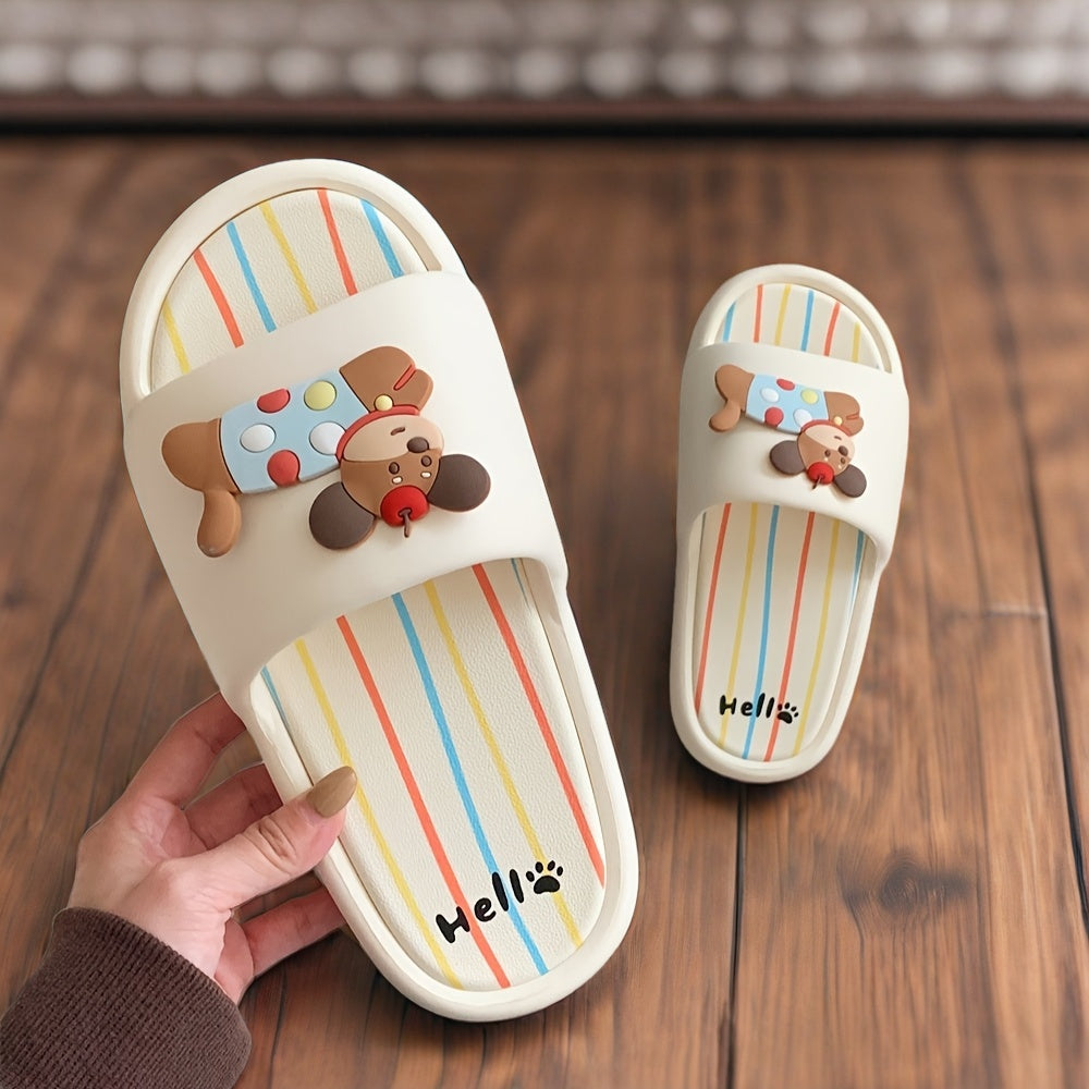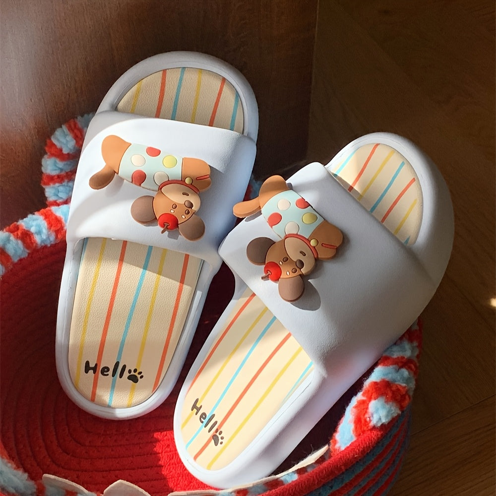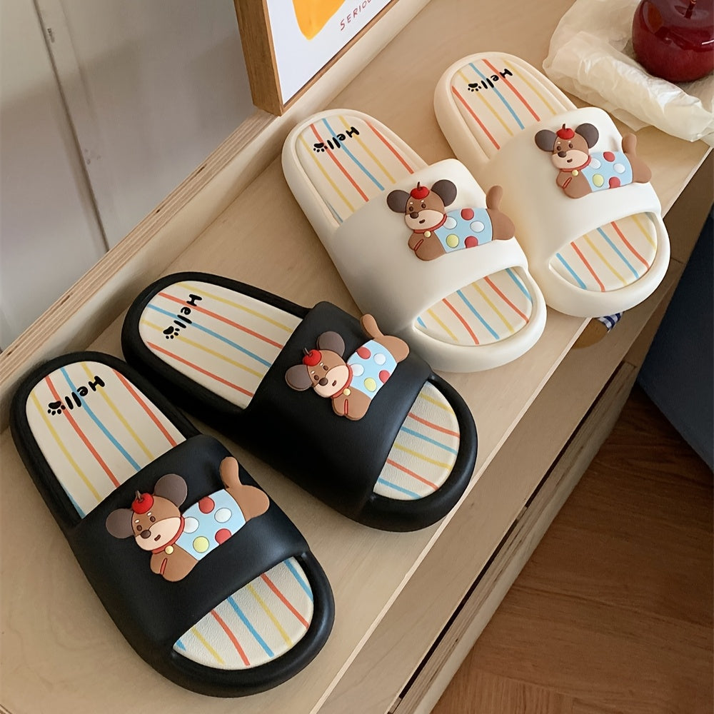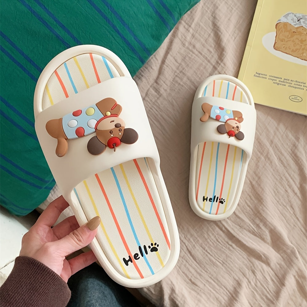 Colorful Polka Dot Puppy Design Slippers for Couples - Indoor\u002FOutdoor Summer Stripe Sandals, EVA Material, Hand Washable