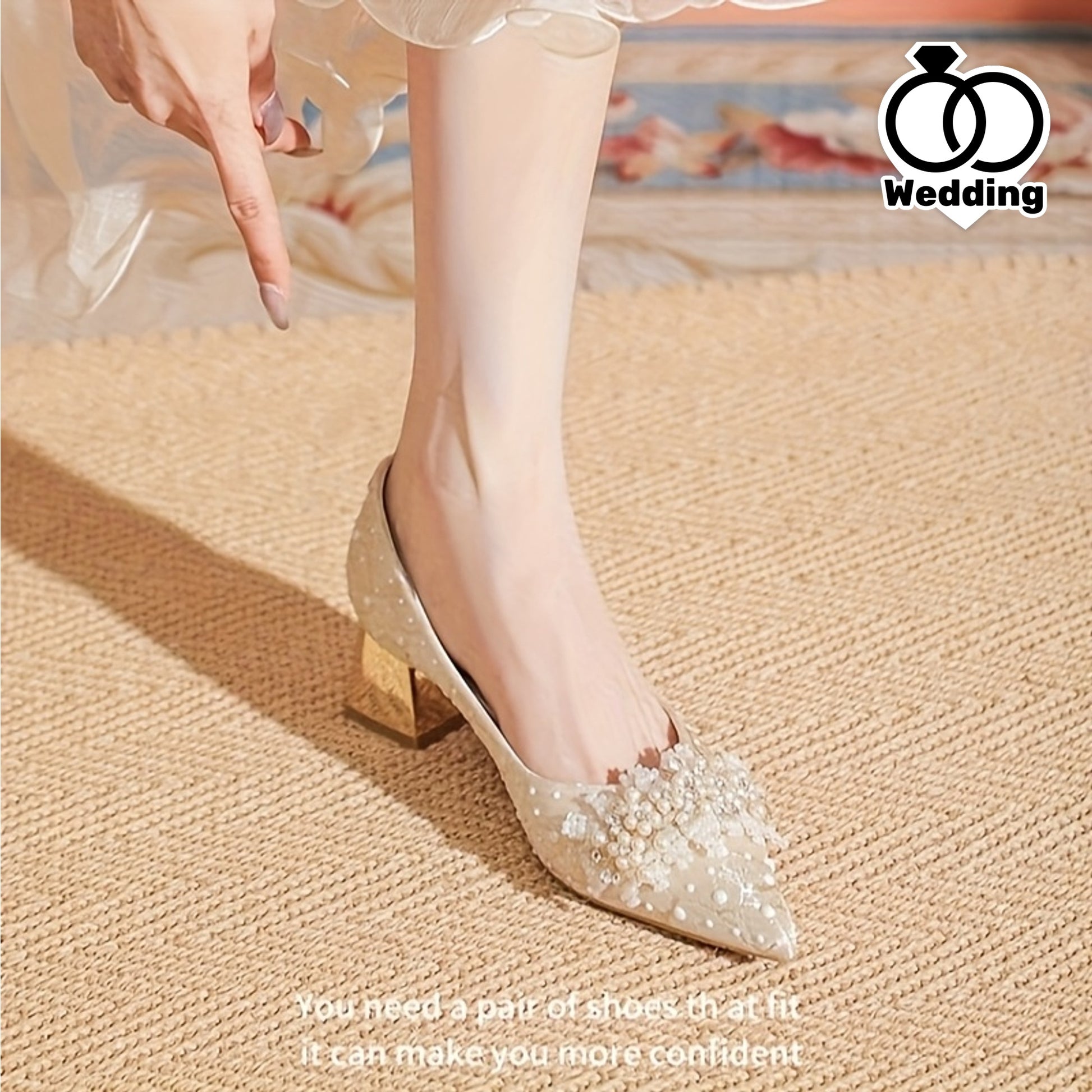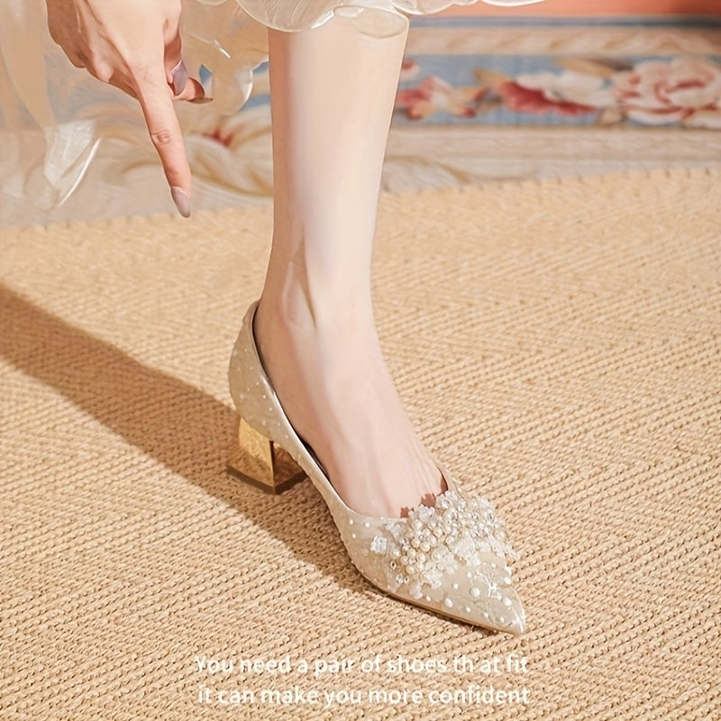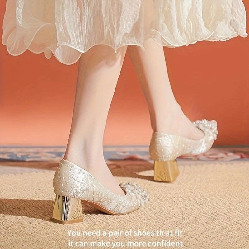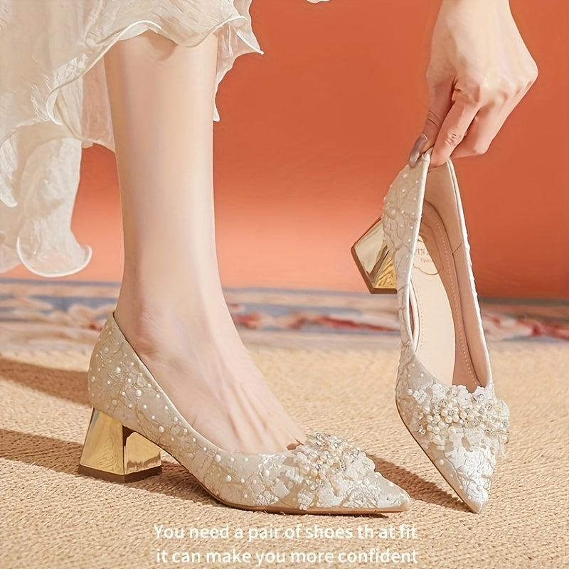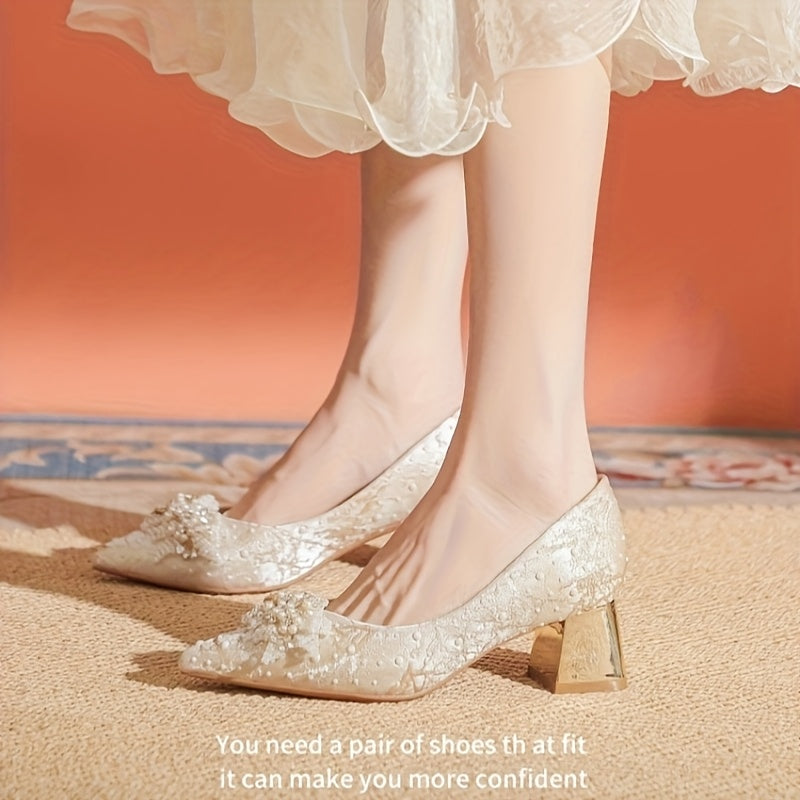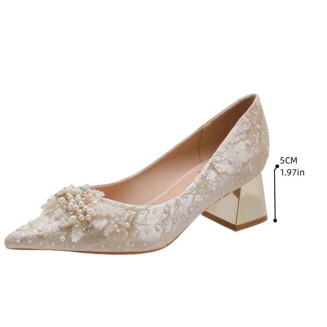 French-Inspired Pumps Comfortable French-Inspired Rhinestone & Embellished Women's Pointed-Toe Block Heel Pumps | Durable Rubber Sole, Mid-Heel Dress Shoes for Weddings, Parties & Formal Events