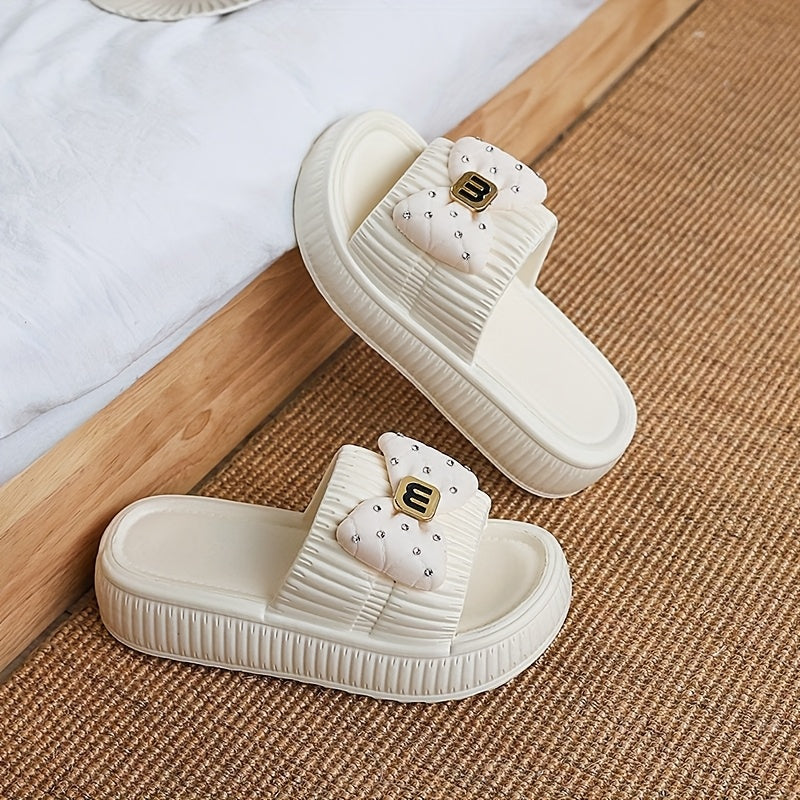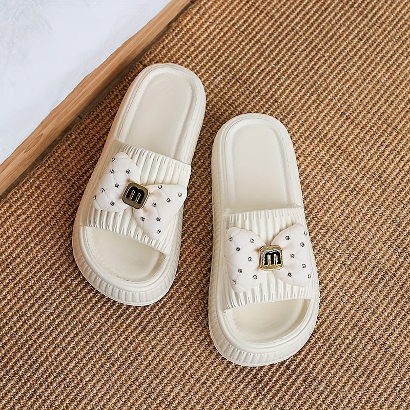 Summer Slippers Japanese & Korean Style Women's Apricot Bow EVA Slippers | Thick Sole