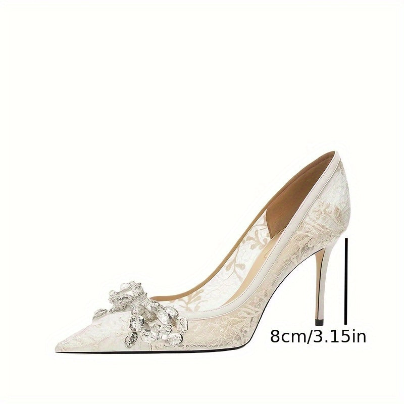 The 2025 summer new lace wedding shoes, with a fairy style, pointed toe, rhinestone, thin heel and breathable high heels, are versatile for brides and are selling well during the wedding season