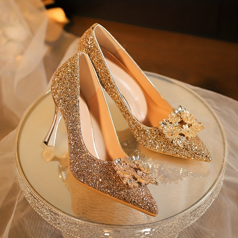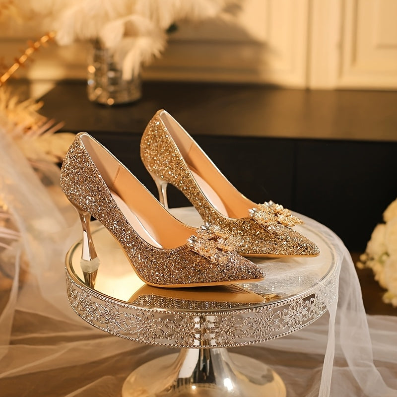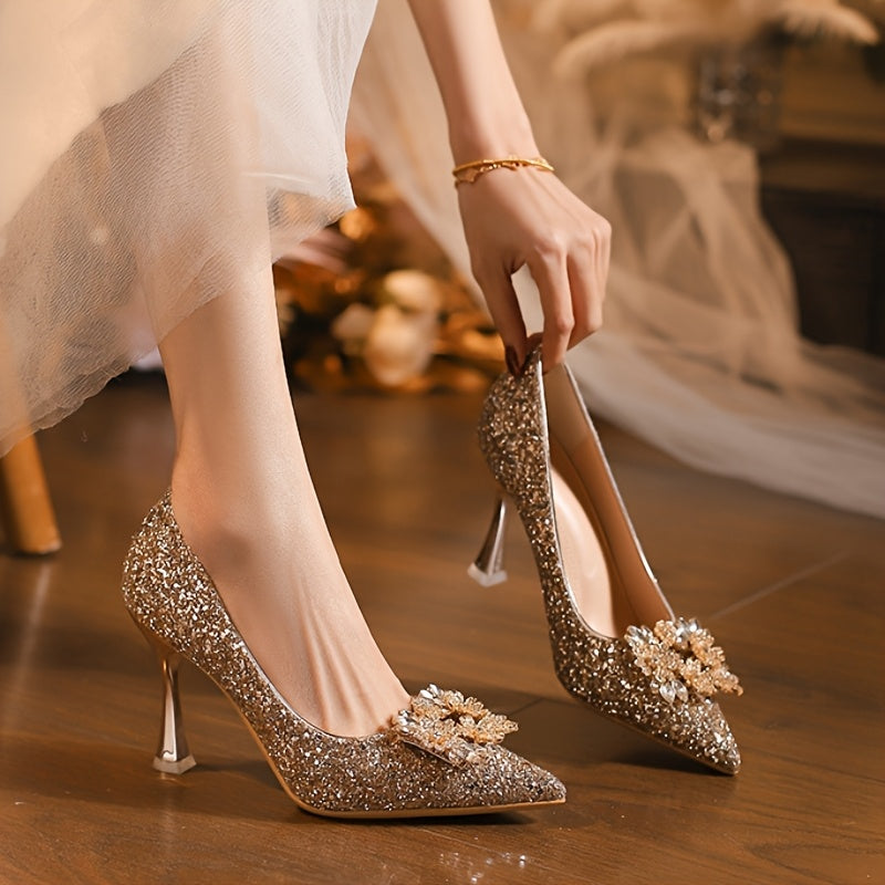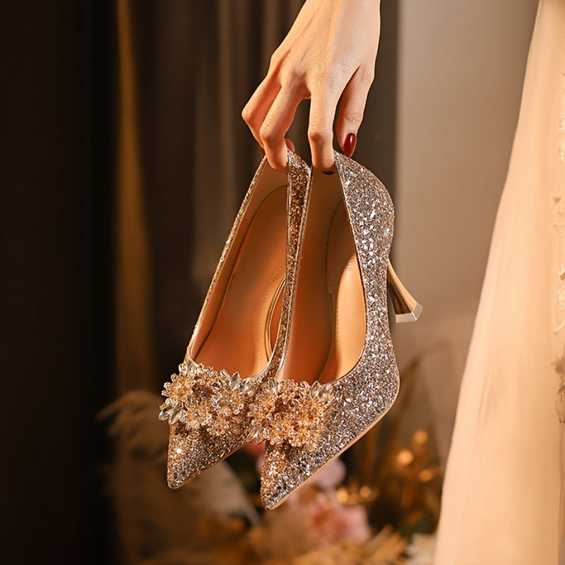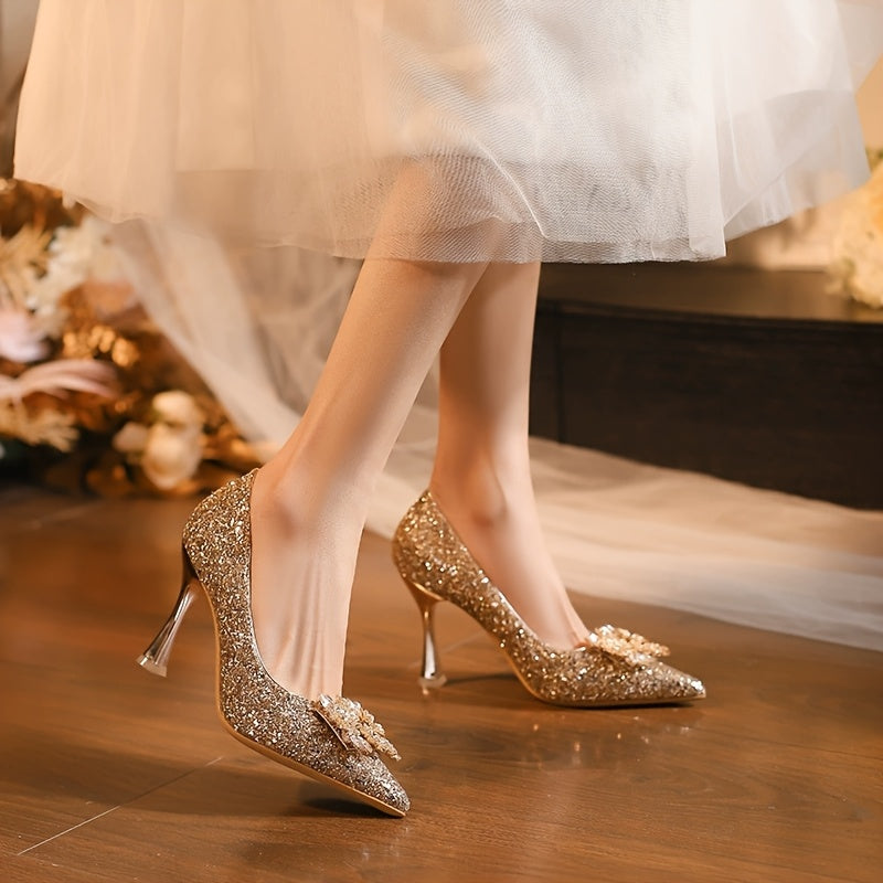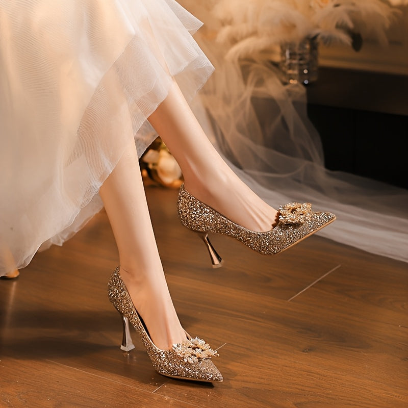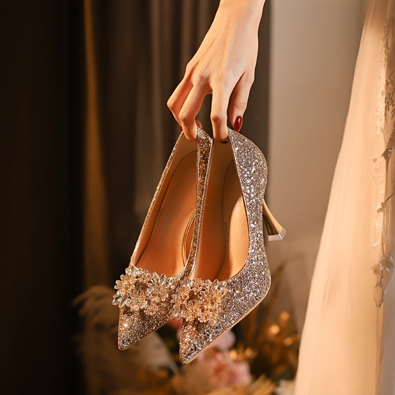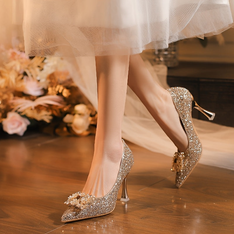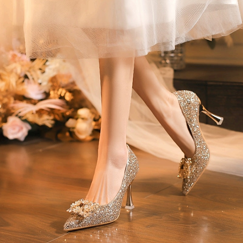 Wedding shoes, the pointed - toe high - heeled shoes for brides that match the main wedding dress and are comfortable to wear
