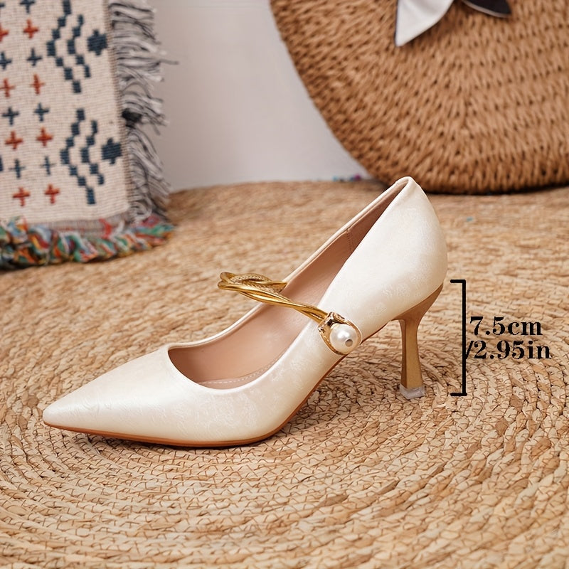 Women'S Elegant Pointed-Toe Stiletto Heels with Floral Embellishments - White Synthetic Cover High Heels for All Seasons, Versatile Dress Shoes for Office & Formal Events, High Heel Shoes, Formal Footwear, Sophisticated Style, Durable Rubber Sole