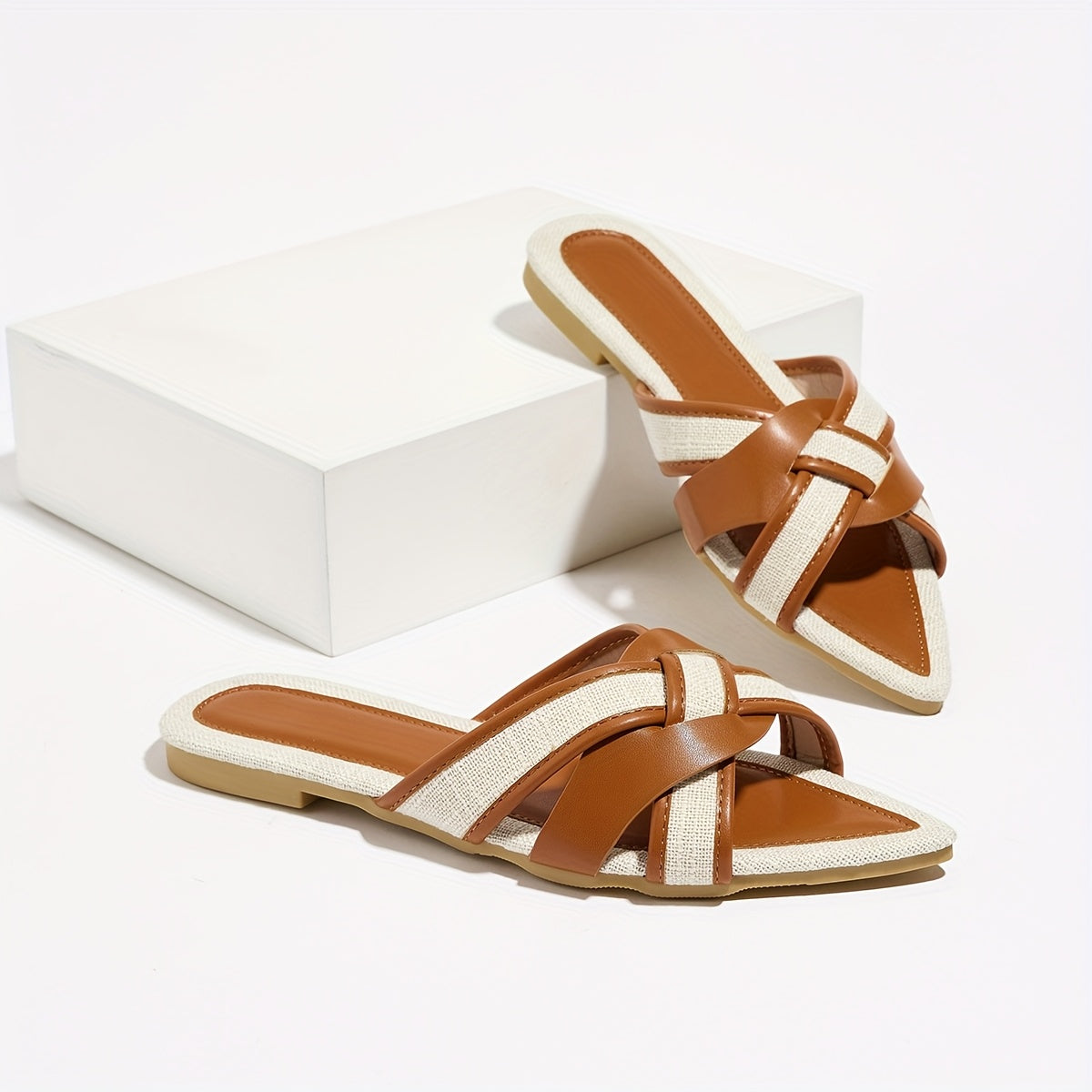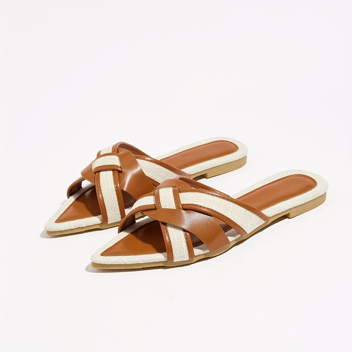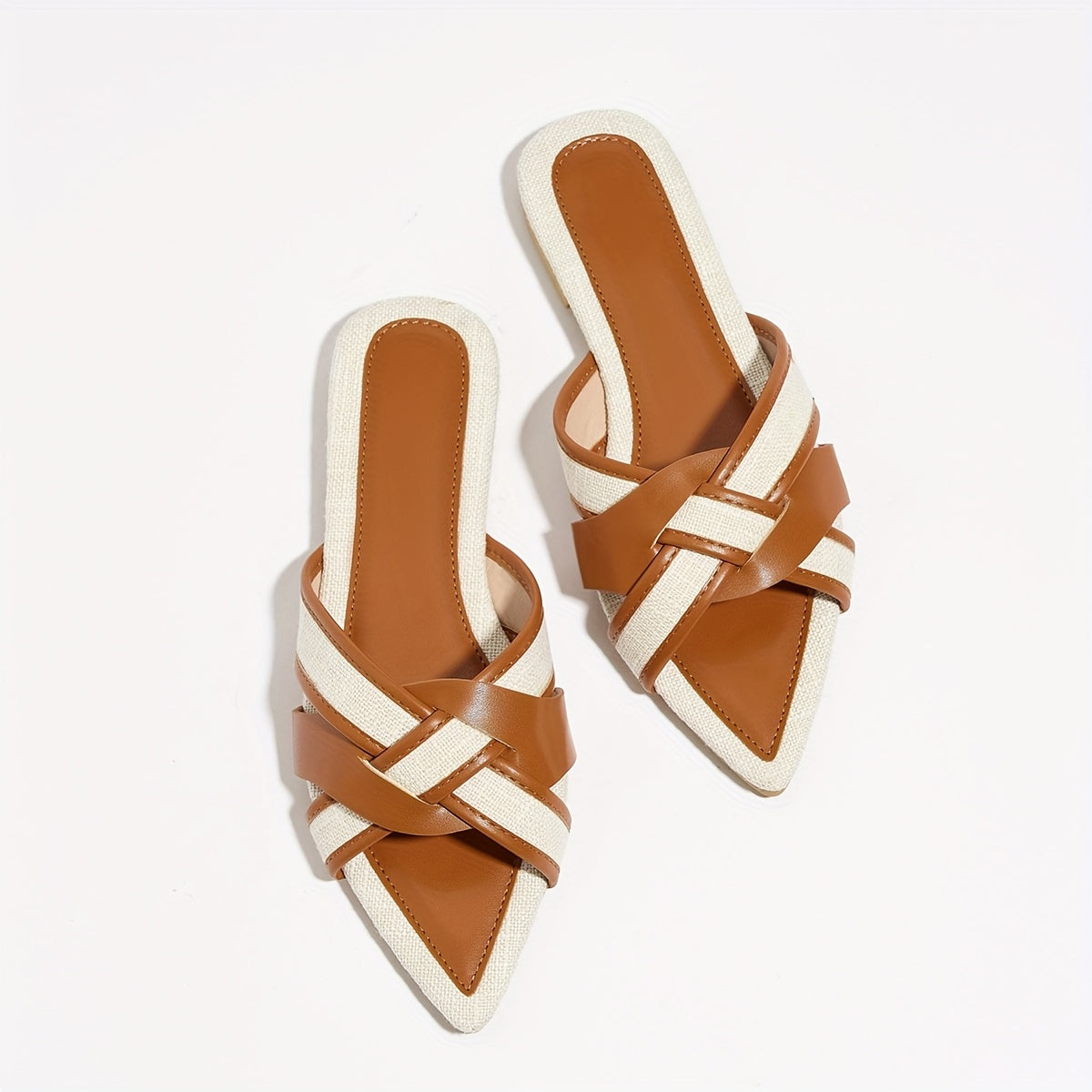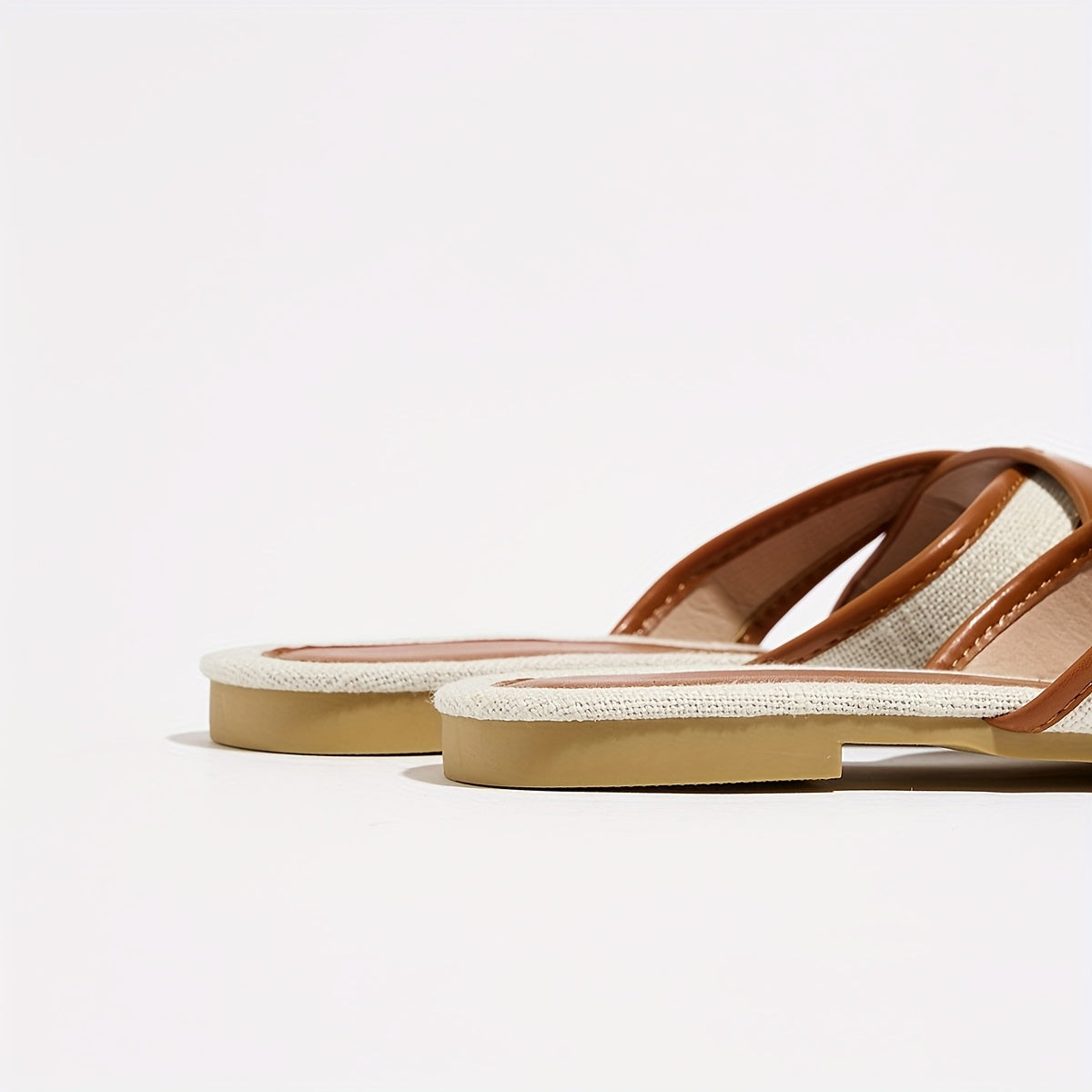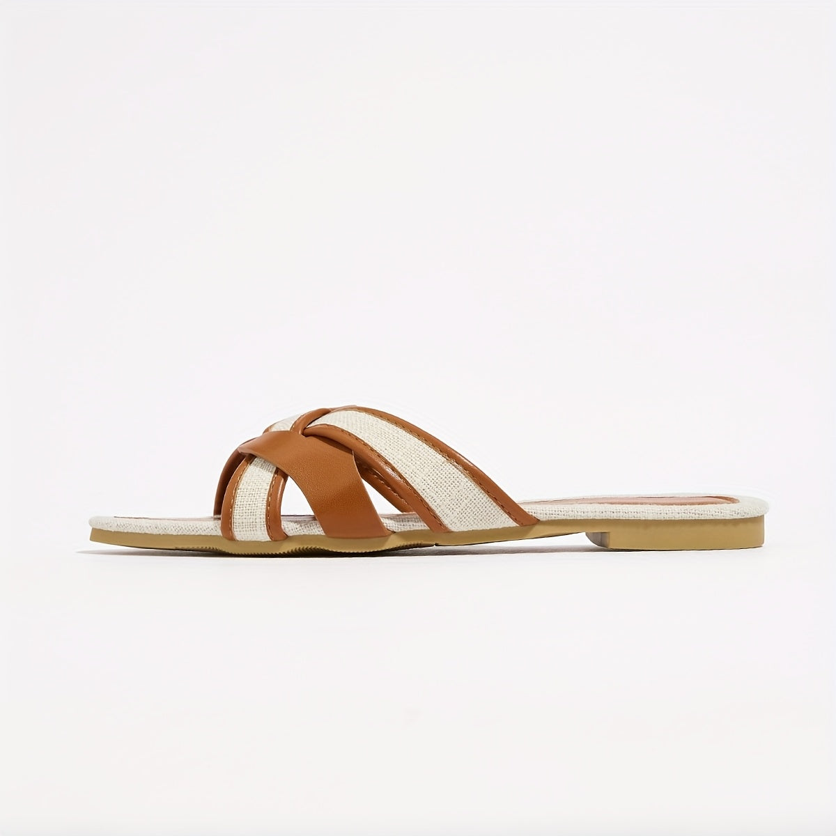 Women's Pure Cross-Strap Casual Flat Sandals with Stitched Edge Design