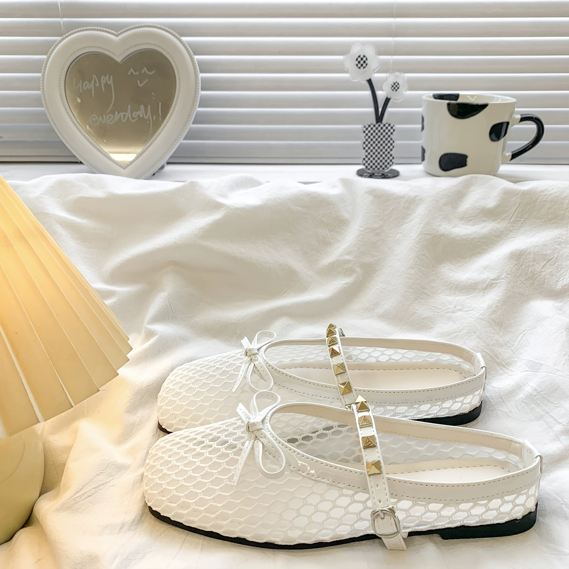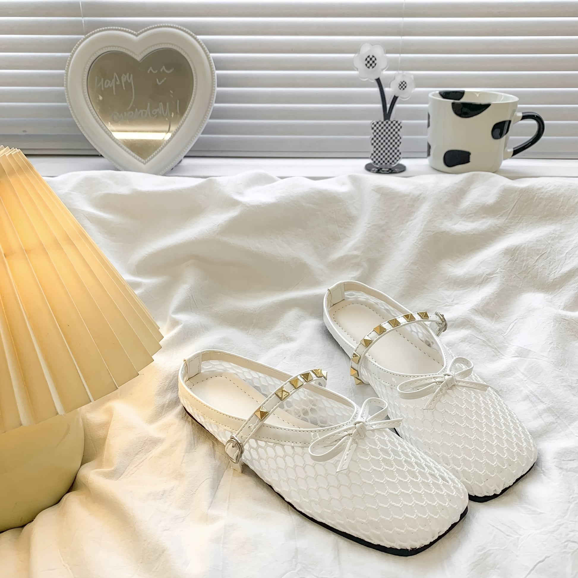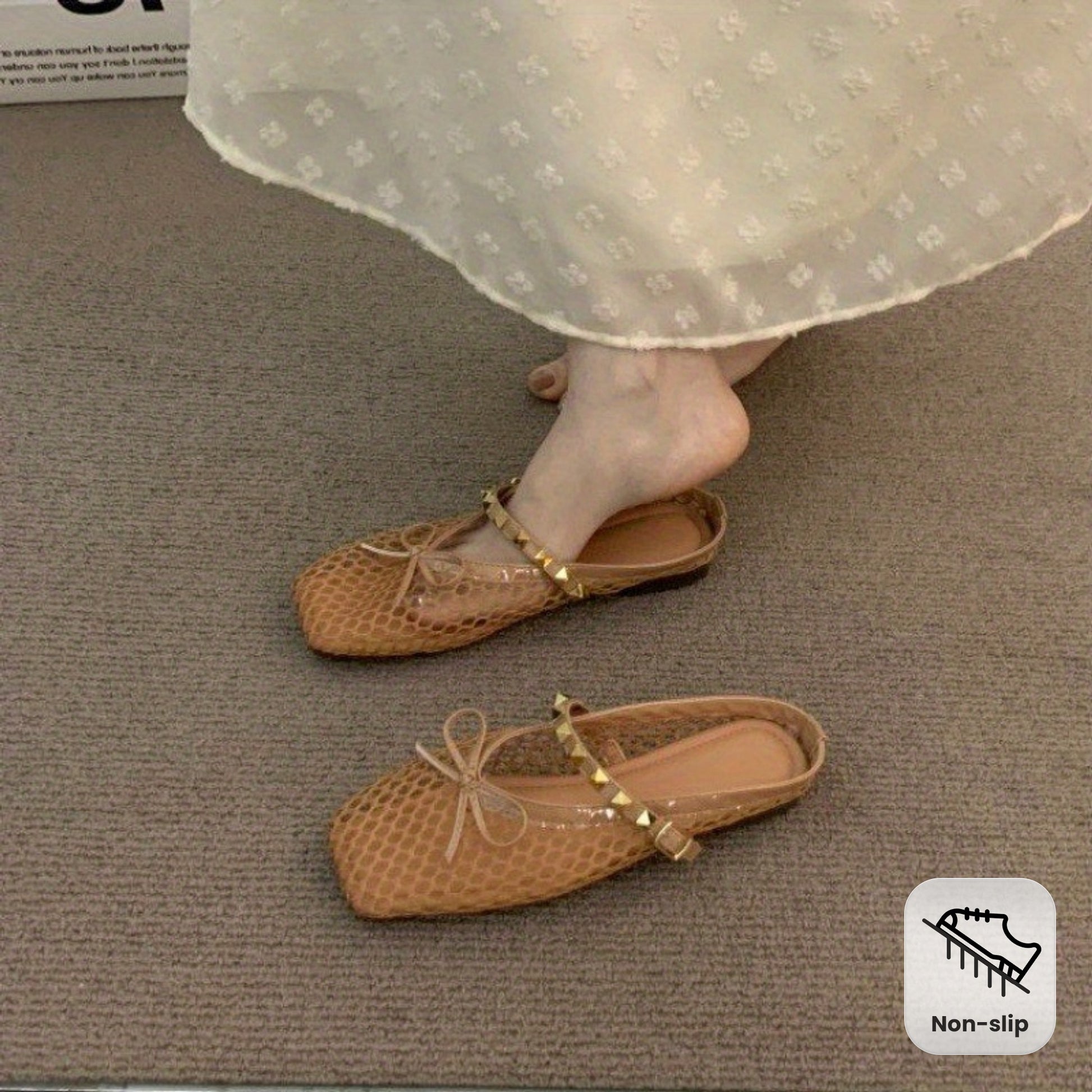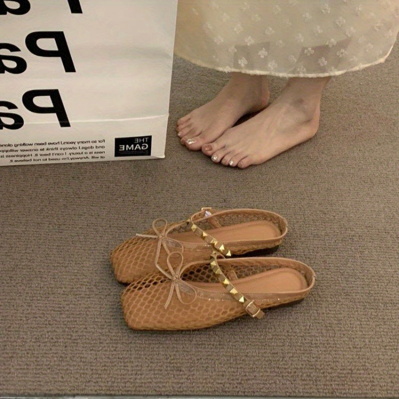 Women's Summer Square Toe Flat Sandals with Bow Detail - Breathable Mesh Upper & Non-Slip Rubber Sole, Comfortable Low Heel (Less Than 1.18inch) for Casual & Semi-Formal Outfits, Ladies Shoes And Sandals, Daily Wear Footwear, Elegant Shoe Design
