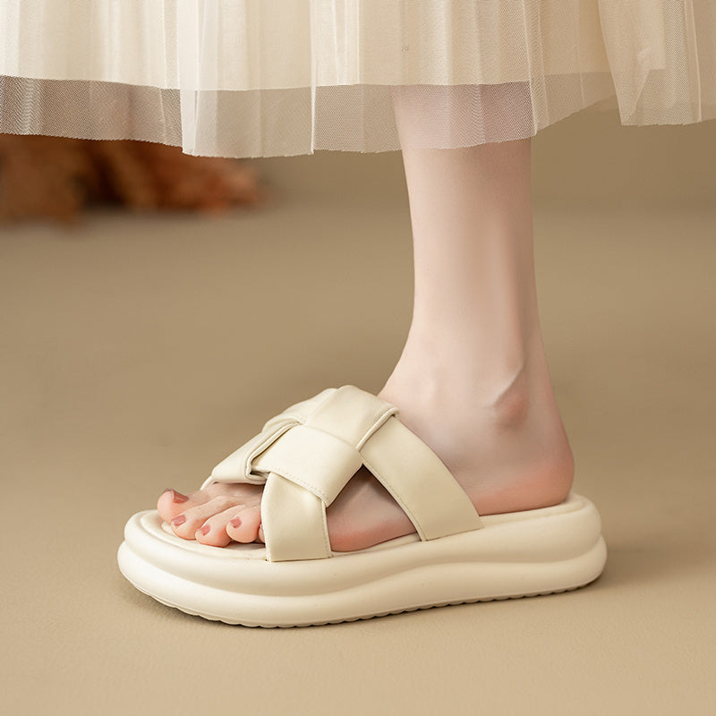 Women'S Wide Toe Slides - Thick Cushioned Sole, Breathable Fabric Upper