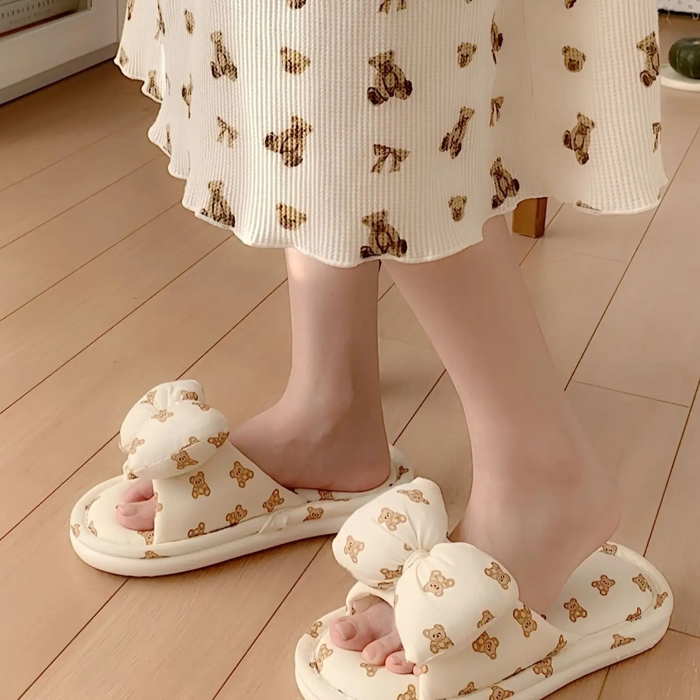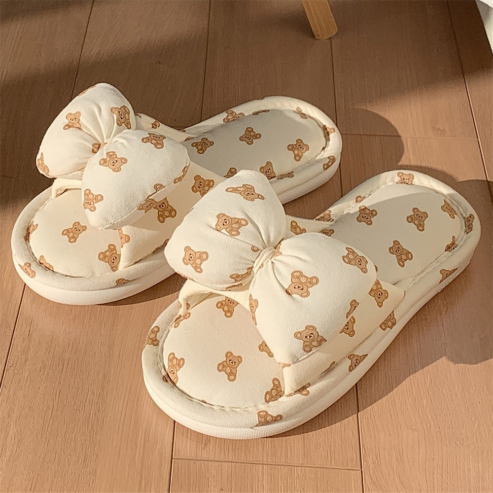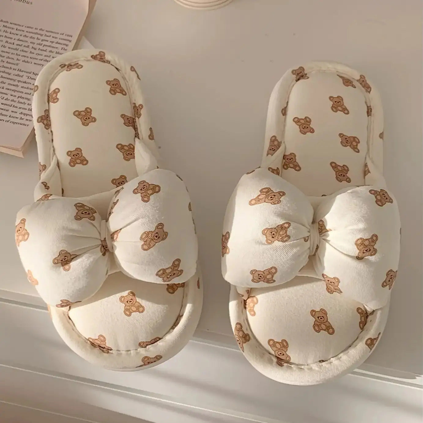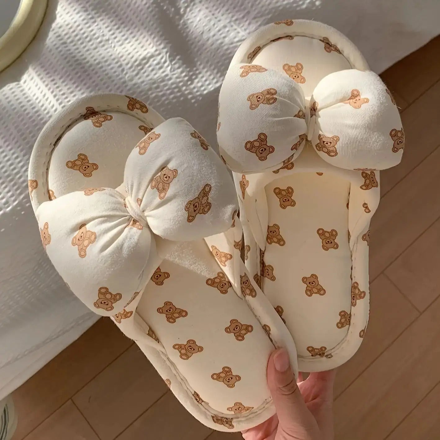 Xixia Women'S Adorable Bear And Bow Design Slip-On Footwear - Soft Fabric Upper And Lining