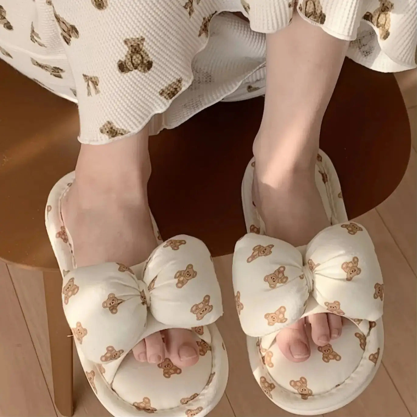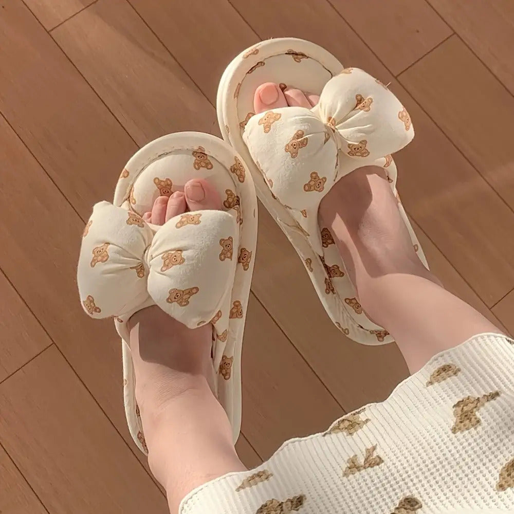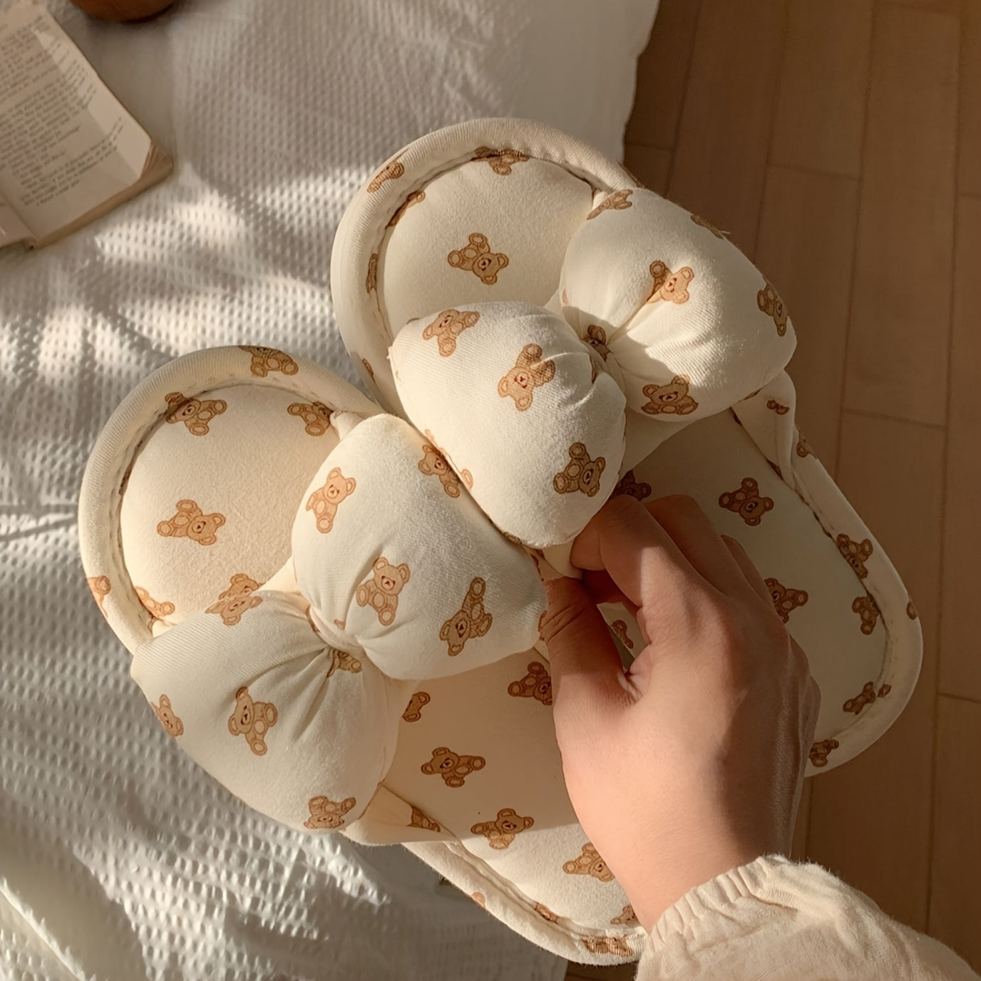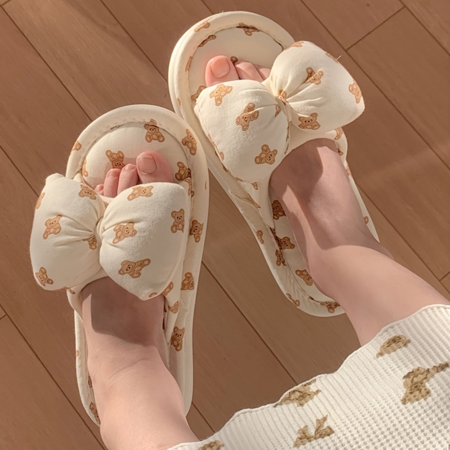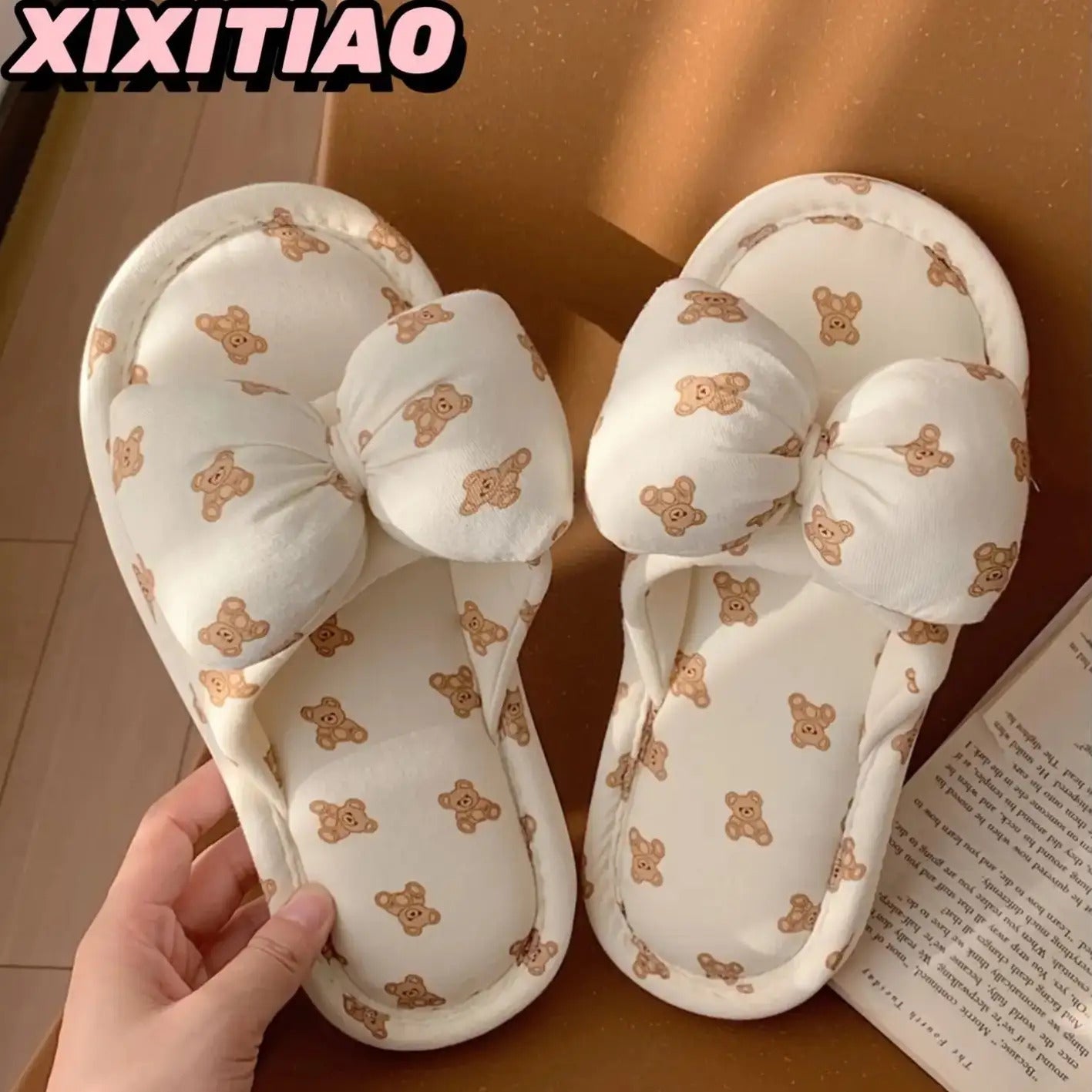 Xixia Women'S Adorable Bear And Bow Design Slip-On Footwear - Soft Fabric Upper And Lining