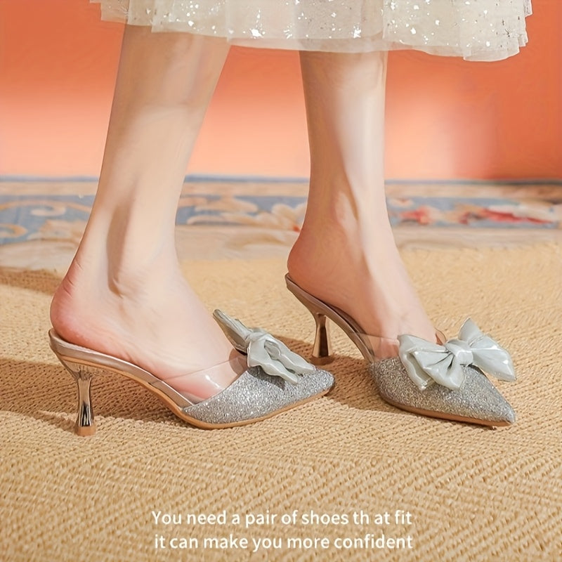 2024 Spring And Autumn New Style Thin High Heels with Flowers And Bow One-Word Buckle for Outdoor Wear
